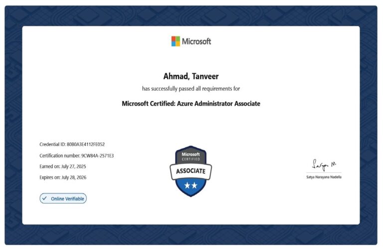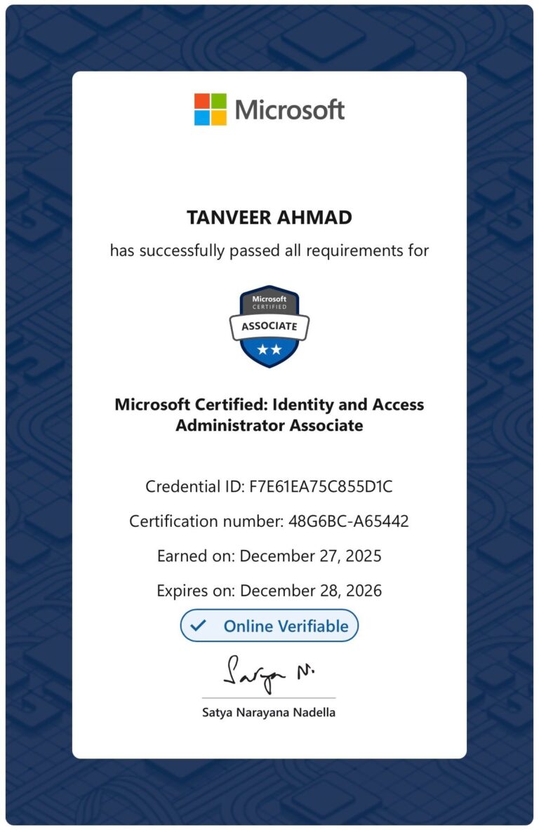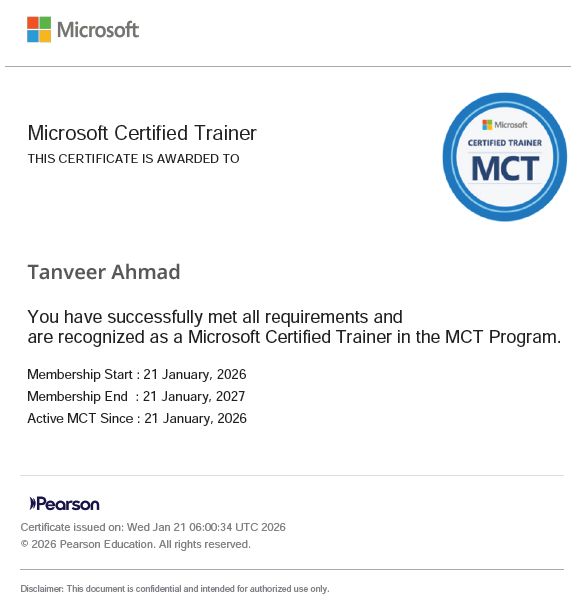 I hold multiple certifications, including Microsoft Certified Trainer (MCT), Cisco CCNP and CCNA, and VMware. I’m also certified in Microsoft Azure, AWS Solutions Architect, and Azure AI Fundamentals. My certifications span across enterprise administration, identity and access management, and cloud technologies, reflecting my expertise in IT infrastructure.